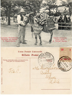 Cartão postal enviado de Ponta Delgada,em 7/5/1907, via S.S."Canopic" manuscrito para Pensylvania - USA.